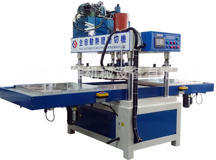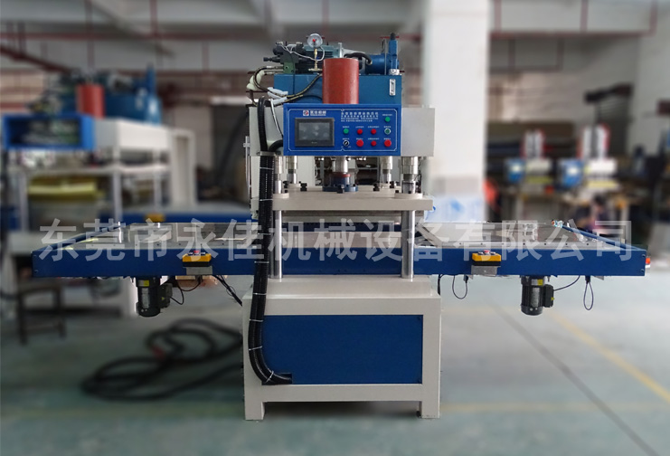 主要是利用被加工的PU、PVC、TPU、EVA、PET等材料必须配合专用模具有外到内加热熔接,加上一定的压力使所需要热合焊接的皮料、塑胶产品熔接压纹的作用。