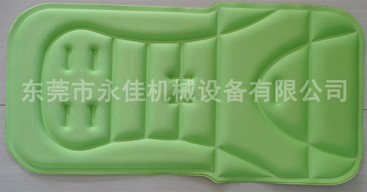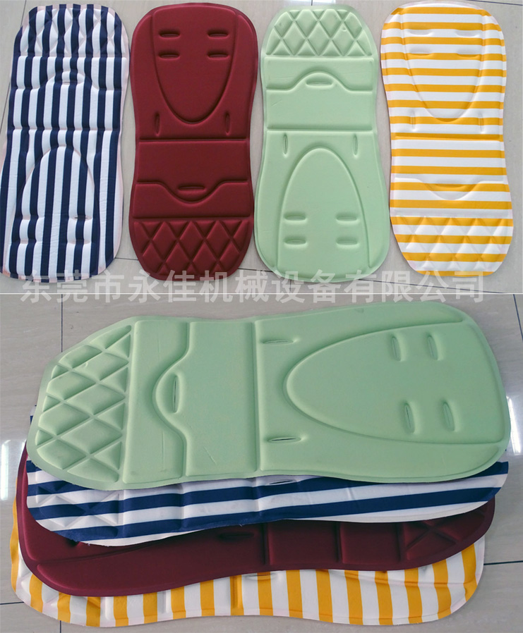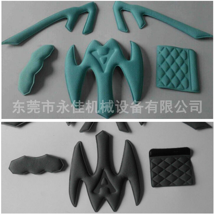 主要适用于PVC 、 EVA 或 含PVC10% 以上任何软硬胶皮及真皮或布类之特殊用途均可加工。婴儿车海绵坐垫、头盔海绵内衬垫、汽车脚垫广告商标,PVC喷丝地垫等压合压纹成型。
